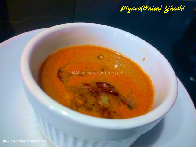 This is one of the easiest, tastiest and traditional gravy native to konkani cuisine which anyone can prepare with minimal ingredients easily available in the kitchen.The taste will be best when paired with pathrado(colocasia leaves steamed rolls).The sliced rolls may be even dunked in the gravy just like koftas which will also taste heavenly and known 'ghashi pathrado',and non onion lovers may season the gravy with mustard seeds,curry leaves and asafoetida/hing skipping onions altogether.
